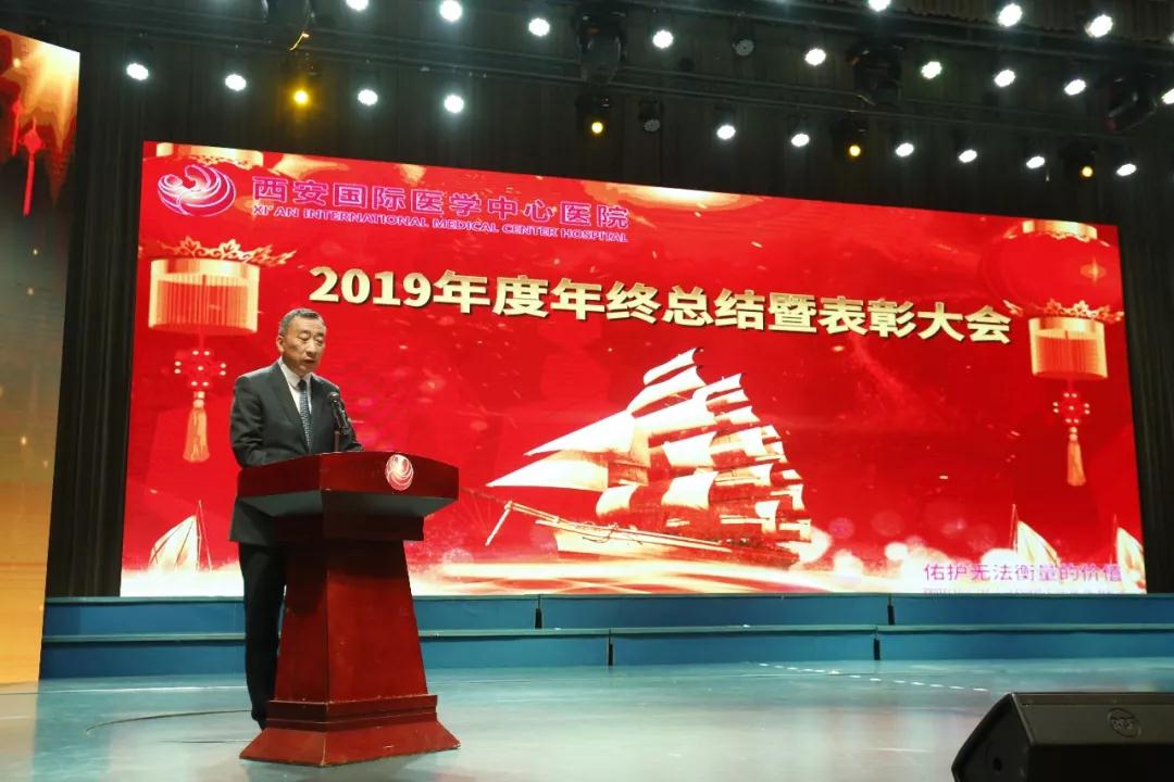 凱歌高奏辭舊歲,春風(fēng)得意迎新年。12月27日,西安國際醫(yī)學(xué)中心醫(yī)院2019年度年終總結(jié)暨表彰大會(huì)在吉源國際酒店舉行。國際醫(yī)學(xué)副總裁孫文國、西安國際醫(yī)學(xué)中心醫(yī)院院長尹強(qiáng)、財(cái)務(wù)總監(jiān)權(quán)穩(wěn)延、副院長楊峰、副院長李武平以及各專科醫(yī)院、各科室領(lǐng)導(dǎo)等出席。大會(huì)由西安國際醫(yī)學(xué)中心醫(yī)院總經(jīng)理王志峰主持。1000余名員工齊聚一堂,總結(jié)回顧2019,共話奮斗歷程,共享成功喜悅,共繪發(fā)展藍(lán)圖。