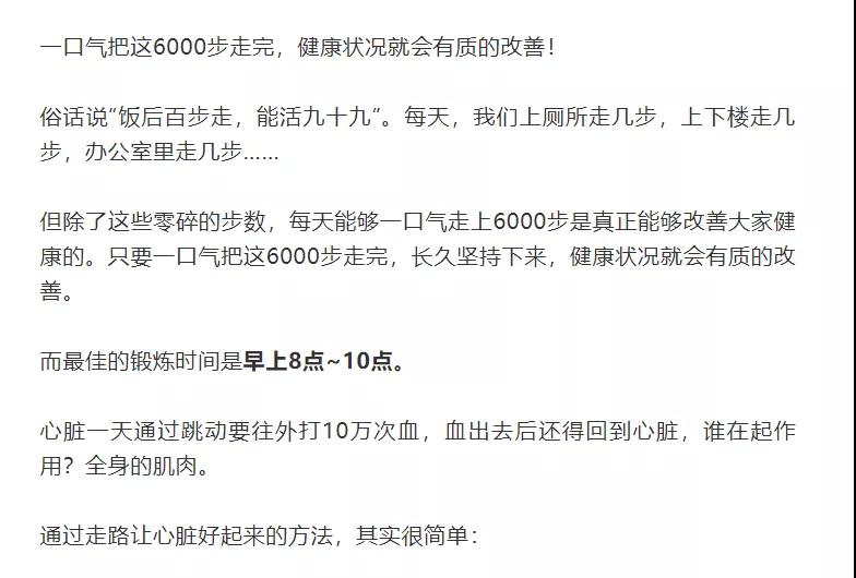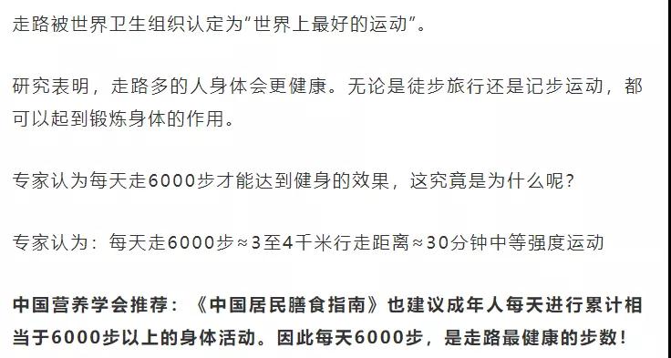 但是不要盲目的“拼微信步數(shù)”,在健康的基礎(chǔ)上,有意識地加大、加快步伐,將運(yùn)動融入生活、增加熱量消耗,讓走路這顆“長壽藥”發(fā)揮最大效果。