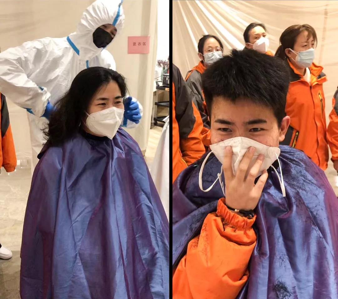 周詩堯第一時(shí)間就趕來了。他們一行四人自帶理發(fā)裝備,在醫(yī)療隊(duì)隊(duì)員們的幫助下穿上防護(hù)服后,整整用了超過十個(gè)小時(shí)為一百多位隊(duì)員理發(fā),“剪辮子”“剃平頭”“理光頭”在這幾種發(fā)型之間熟練的切換......