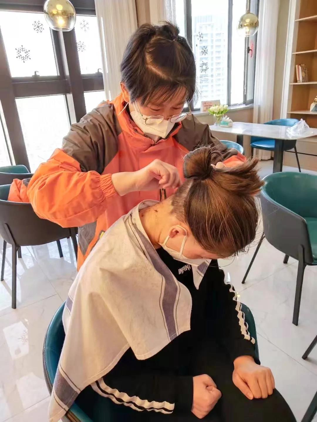 自2月3日醫(yī)療隊(duì)抵達(dá)武漢,許多熱心企業(yè),包括武漢市政府都在一刻不停地在為大家的后勤保障奔波。但由于疫情防控的原因,理發(fā)店都關(guān)門了。經(jīng)過多方協(xié)調(diào),終于聯(lián)系到家住在附近的周詩堯等人。