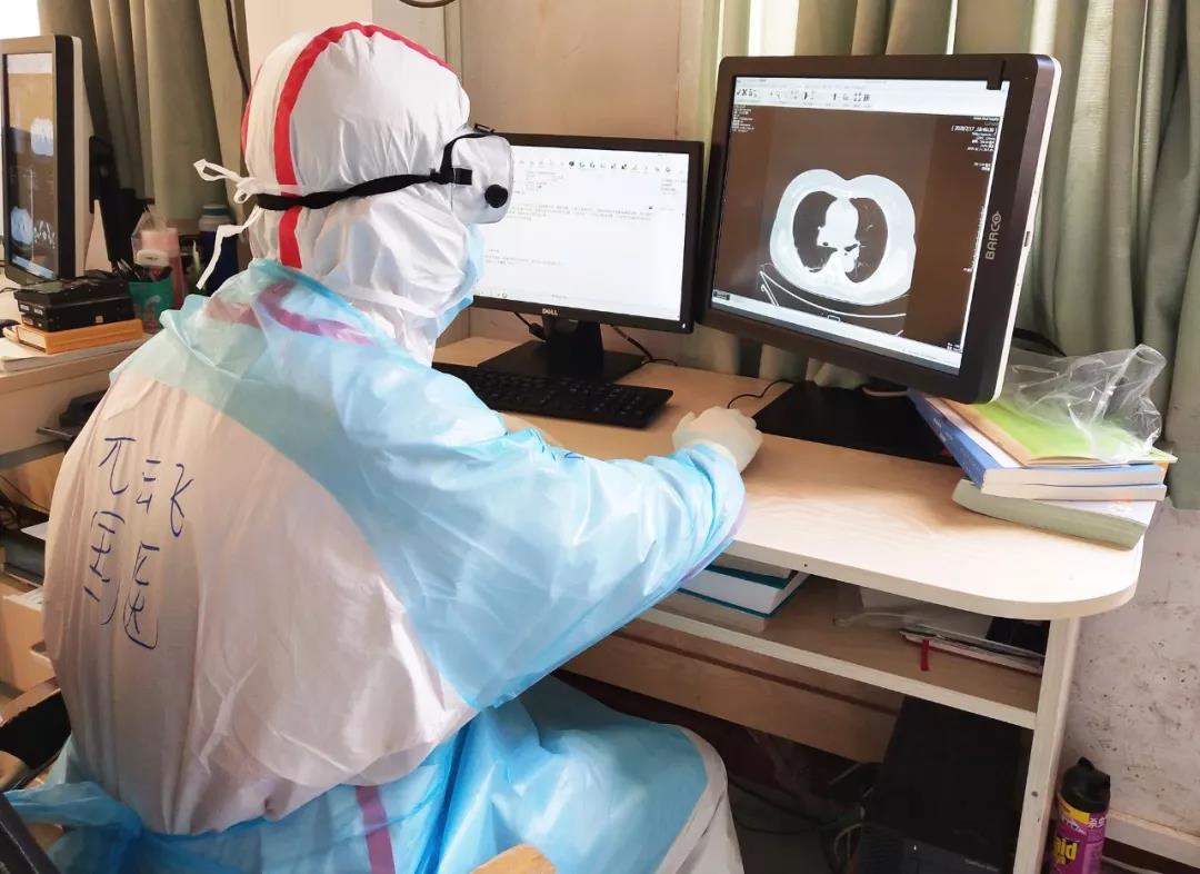 一個班次工作結(jié)束,兀云飛脫下防護服已是大汗淋漓?!皠倎淼臅r候,穿著防護裝備看片速度有些慢,不過經(jīng)過一段時間適應后快多了,我多看一個片子,就有一個人多一份希望?!必T骑w說。
