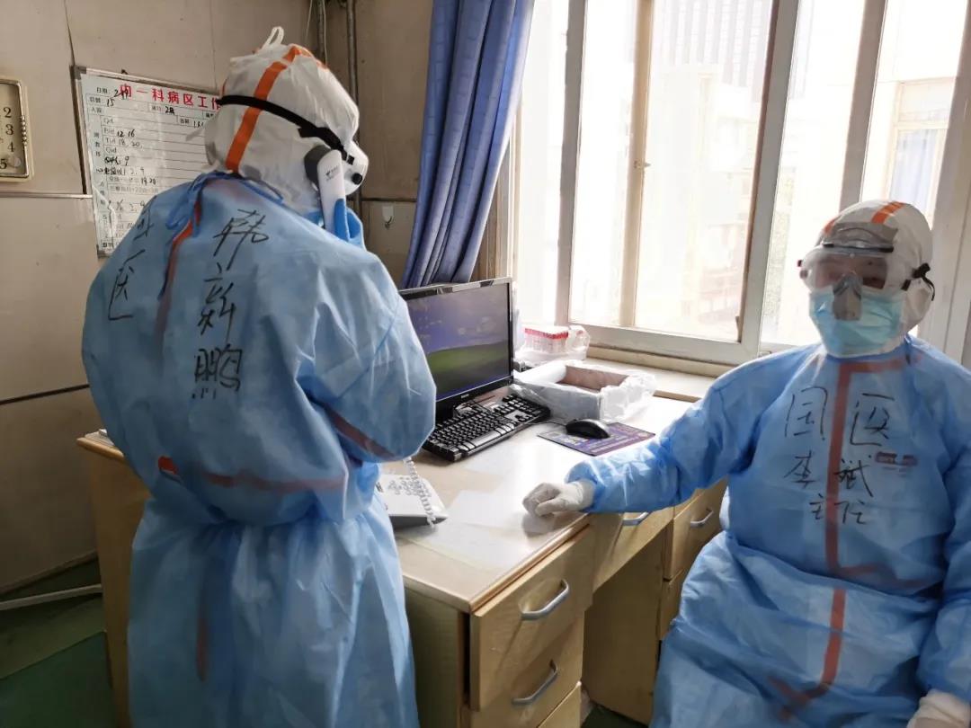 疫情就是命令,時間就是生命。趕到八院一病區(qū),他連夜熟悉情況,第二天一大早,他就帶著自己的團隊進入戰(zhàn)位——一病區(qū),逐一查看患者,掌握病情,與八院同志溝通制定救治方案。