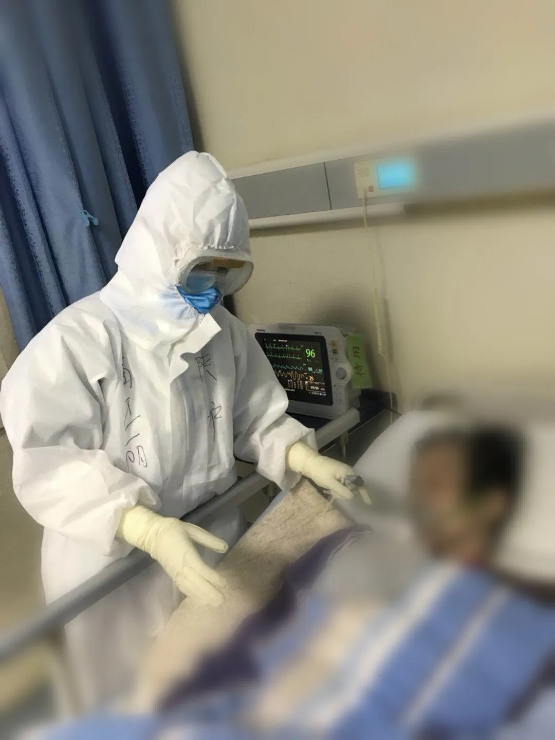 來武漢已經(jīng)一個月了。激情滿滿的我,總想第一時間進入病區(qū)為確診的患者們做點什么。但進了病區(qū)才發(fā)現(xiàn)穿著防護服我的心率會達到120次以上,護目鏡總會起霧導致我什么都看不見,N95口罩總讓我鼻梁和耳朵的勒印久久不能恢復,高強度的工作總是會濕透了里面的衣服……但這都不是問題,每每看到患者感激的淚水和病情好轉(zhuǎn)后和我流暢的交流,這一切都值了。