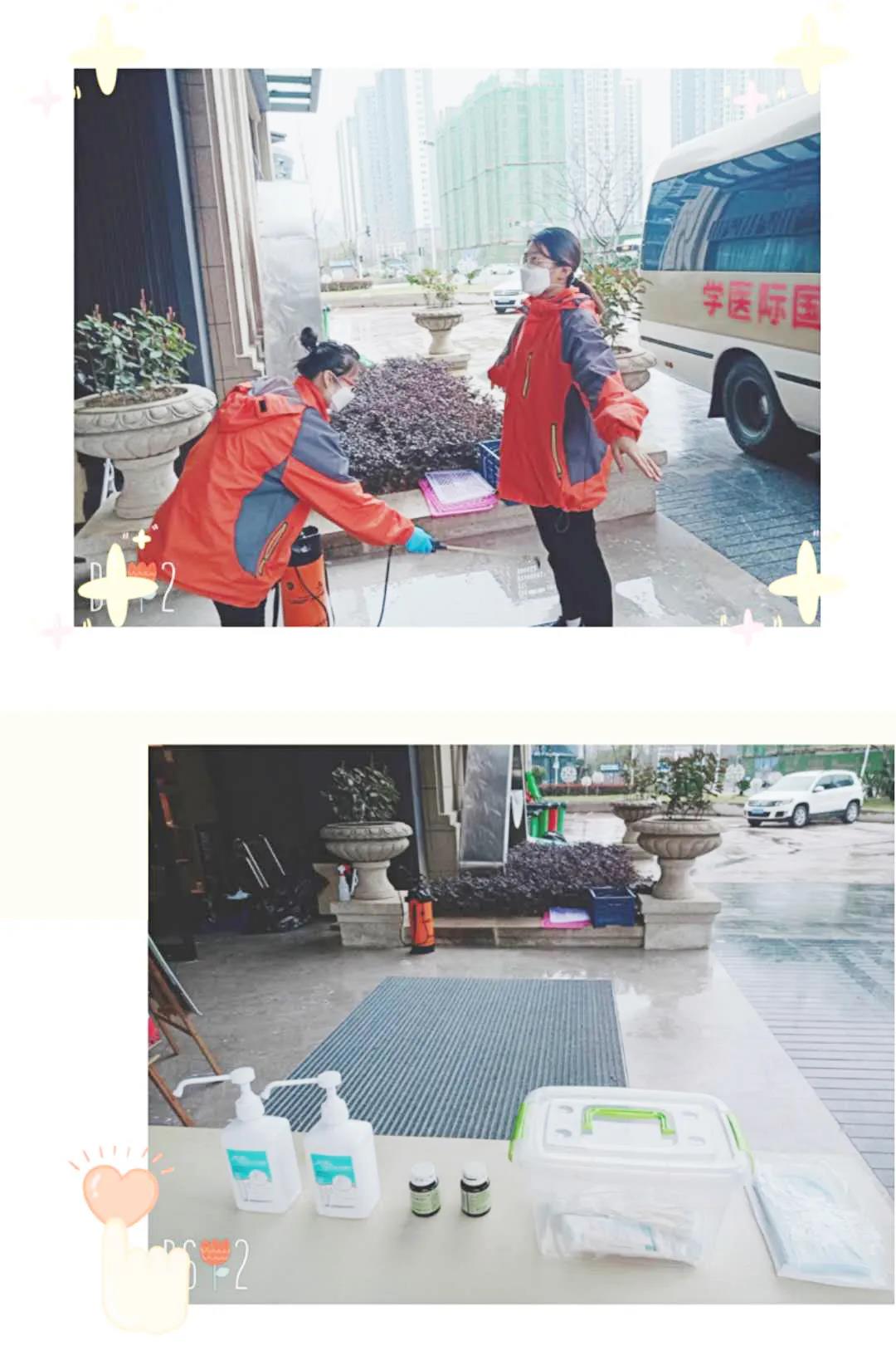 不知不覺已經(jīng)來了一個月。我被分配到消殺保障組,為做好消殺工作,院感部門在酒店門外劃分了一塊消殺區(qū)域。隊友回到酒店后,首先用配好的84消毒液對外層的衣褲鞋子表面及鞋底進(jìn)行消毒,再用手消液對手進(jìn)行消毒,之后對外耳道及鼻腔進(jìn)行消毒,更換口罩,消毒工作就這樣有序的進(jìn)行著。我還肩負(fù)做好后勤保障工作,負(fù)責(zé)各樓層區(qū)域衛(wèi)生的清潔及消毒,各類生活物資清點搬運分發(fā)等。