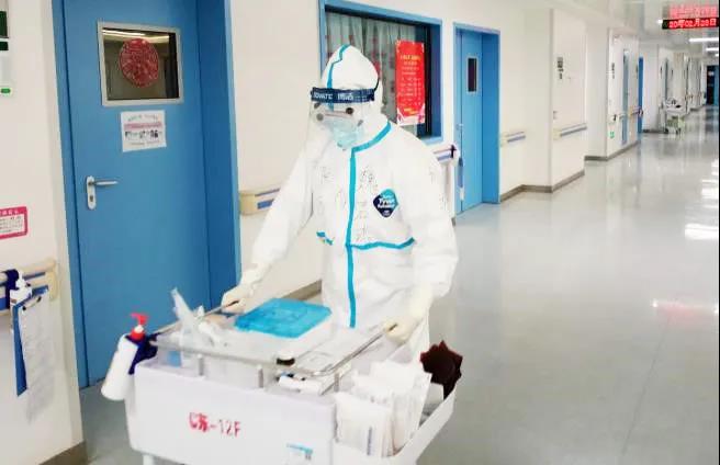 經(jīng)過40分鐘的車程、層層“武裝”后,我迅速投入工作狀態(tài):處理污染區(qū)垃圾、輸液、量體溫、抽血、協(xié)助患者服藥到口、執(zhí)行醫(yī)囑等等基礎(chǔ)操作和生活護(hù)理。身處一線的每一秒,我都在心里給自己默敲警鐘。責(zé)任所在,不容紕漏。清楚記得初上戰(zhàn)場(chǎng)時(shí),盡管已進(jìn)行大量嚴(yán)格培訓(xùn),我仍感到有些緊張。但說來奇怪,當(dāng)我真正接觸到這些樂觀積極的患者時(shí),一股油然而生的親切感、使命感平復(fù)了我的忐忑。