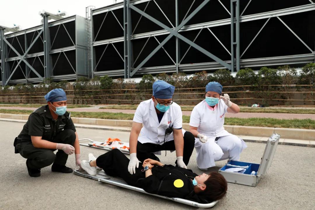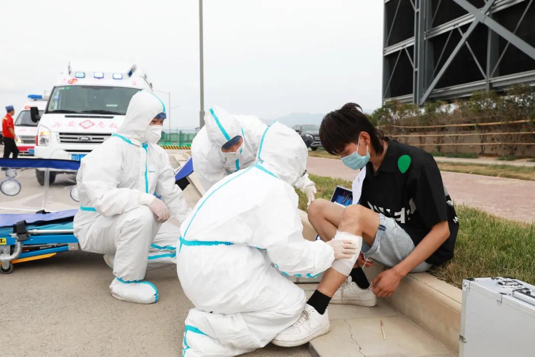 隨后院長尹強(qiáng)通過對(duì)講機(jī)發(fā)出演練開始指令。在觀摩組的注視下,一支由22輛急救車及20組醫(yī)、護(hù)、工人員組成的救援隊(duì)立刻趕赴模擬的重大交通事故現(xiàn)場(chǎng)進(jìn)行應(yīng)急救援。