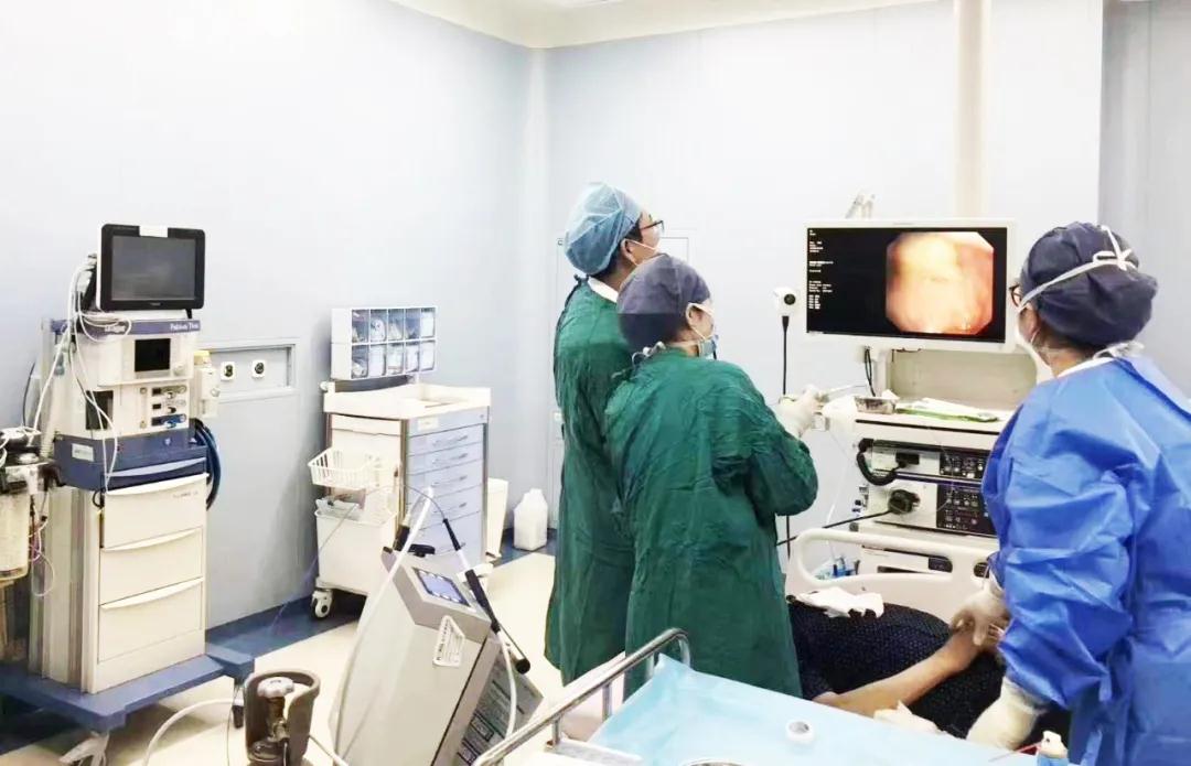 呼吸內科二病區(qū)韓新鵬主任得知后,考慮患者存在氣管內異物,需緊急處理,第一時間匯報胸科醫(yī)院吳昌歸院長,并立即趕赴醫(yī)院,部署各項工作。在吳昌歸院長的指導下,韓新鵬主任帶領科室團隊(樊建勇副主任醫(yī)師、張黎媛主治醫(yī)師、氣管鏡室陳娟等人),為患者實施“電子支氣管鏡冷凍治療術 異物取出術”?;颊呷朐翰坏?小時,就徹底解決了呼吸道阻塞的問題。