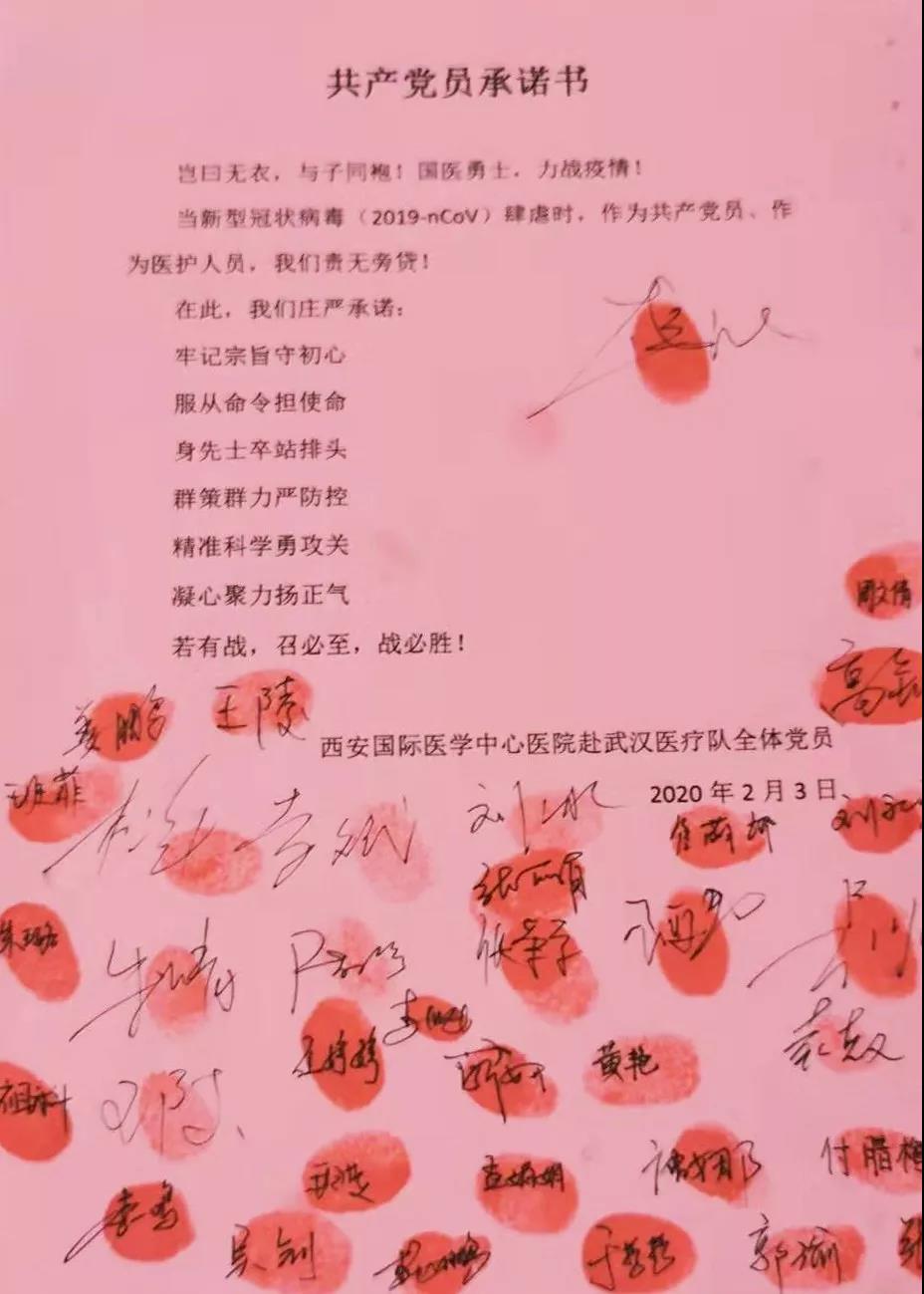 2月3日,西安國(guó)際醫(yī)學(xué)中心醫(yī)院赴武漢醫(yī)療隊(duì)抗擊新型冠狀病毒感染的肺炎承諾踐諾書一經(jīng)發(fā)布,又有一批批醫(yī)護(hù)人員紛紛遞交請(qǐng)戰(zhàn)書、入黨申請(qǐng)書。