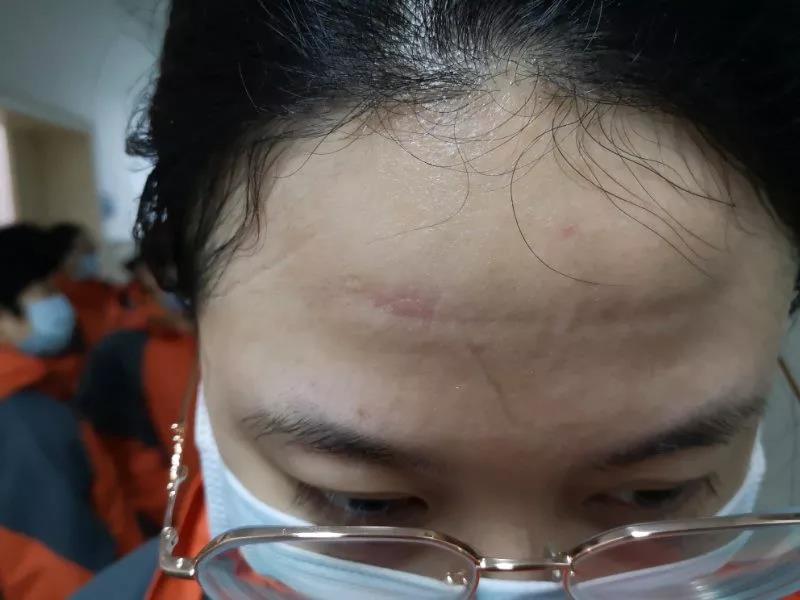 臉上的防護(hù)罩勒痕清晰可見(jiàn),