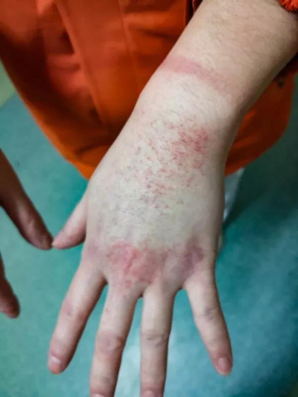 身著厚厚的防護(hù)服,每天工作4個(gè)多小時(shí),摘下護(hù)目鏡,她的臉上布滿了勒痕,為患者輸液、霧化、處理大小便……