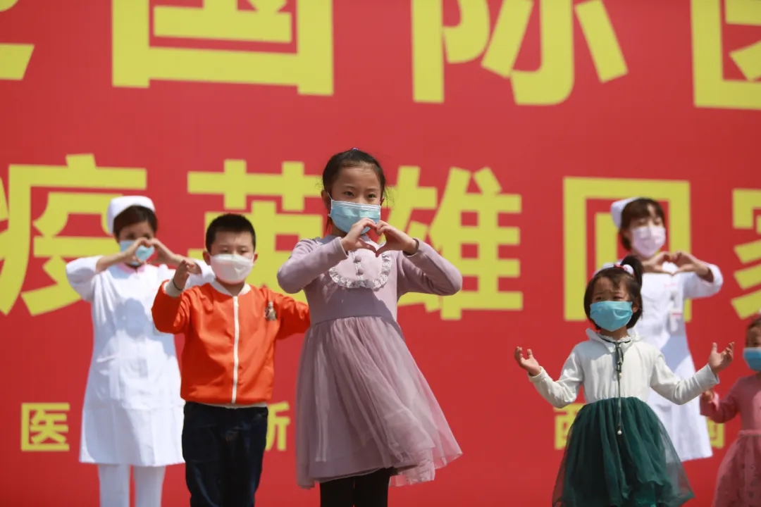 “歡迎媽媽回家!”“致敬一線英雄!”“為你打CALL”人群中,孩子們手持歡迎牌,呼喊著。
