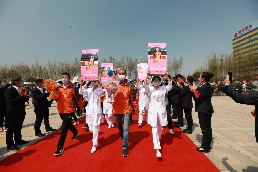 鮮花、掌聲、歡迎曲。西安國際醫(yī)學(xué)中心醫(yī)院萬人廣場的百米紅毯格外引人注目。親人和工作人員夾道歡迎抗疫英雄。國際醫(yī)學(xué)實際控制人劉建申、董事長史今、副董事長曹鶴玲、副董事長王愛萍、監(jiān)事會主席曹建安、副總裁孫文國、副總裁丁震、副總裁王杲、副總裁孫義寬、財務(wù)總監(jiān)王亞星等集團領(lǐng)導(dǎo),以及西安國際醫(yī)學(xué)中心醫(yī)院、西安國際醫(yī)學(xué)高新醫(yī)院、西安國際醫(yī)學(xué)商洛醫(yī)院的領(lǐng)導(dǎo)出席。歡迎儀式由總裁劉瑞軒主持。