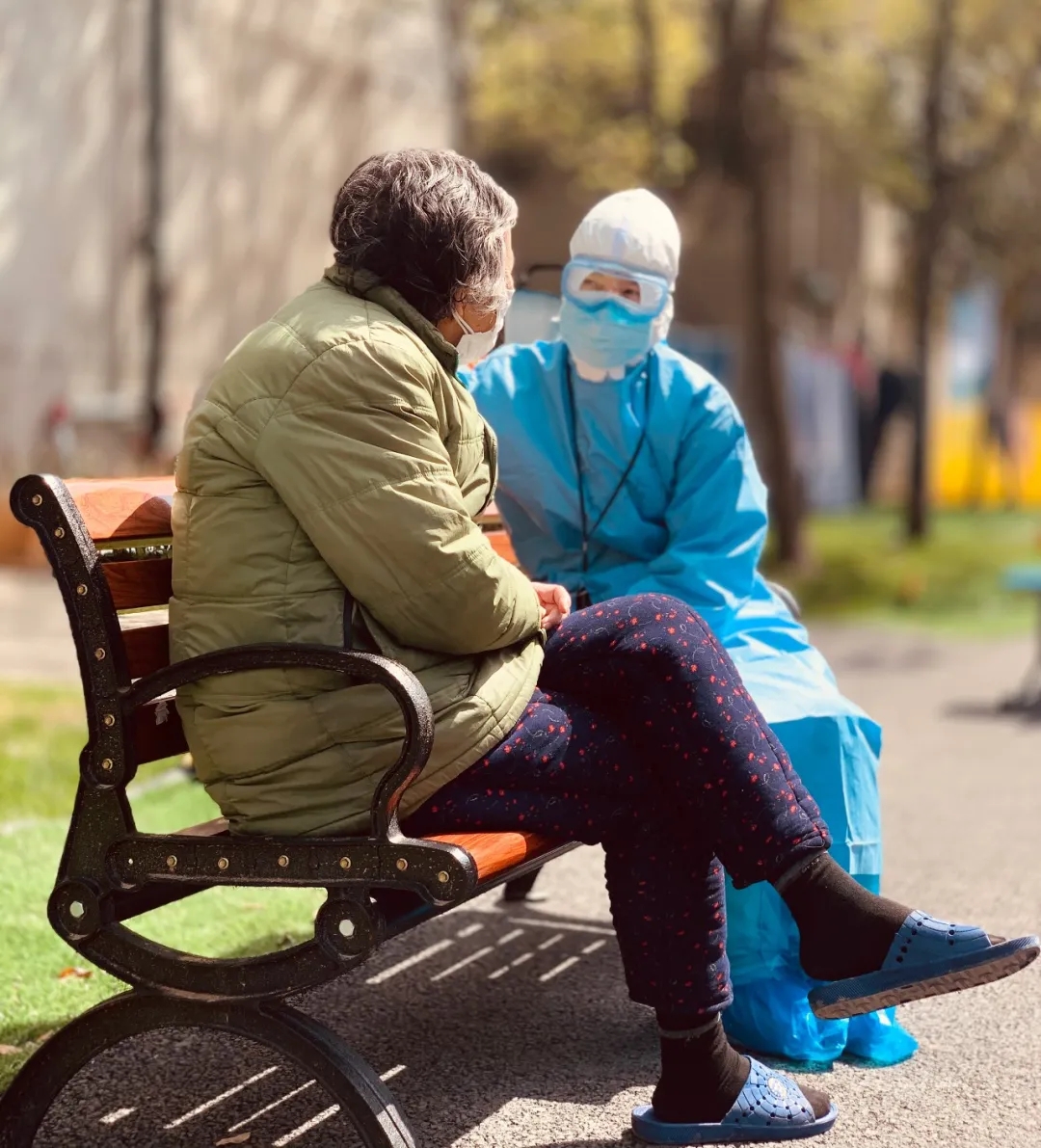 8艙有一位80多歲的老奶奶,中午出來遛彎時看到了醫(yī)療隊護士萬珍妮,主動過來攀談。“你是陜西來的?我看你衣服上寫著西安幾個字了。”“是啊,奶奶,我們是西安國際醫(yī)學(xué)中心醫(yī)院來武漢支援的?!比f珍妮通過和奶奶聊天得知,奶奶的父親以前在寶雞工作過很長時間。“我也算半個陜西人了。沒想到在這里還能見到“老鄉(xiāng)”!感謝你們!”奶奶感覺很親切,和萬珍妮話起了“家?!?。