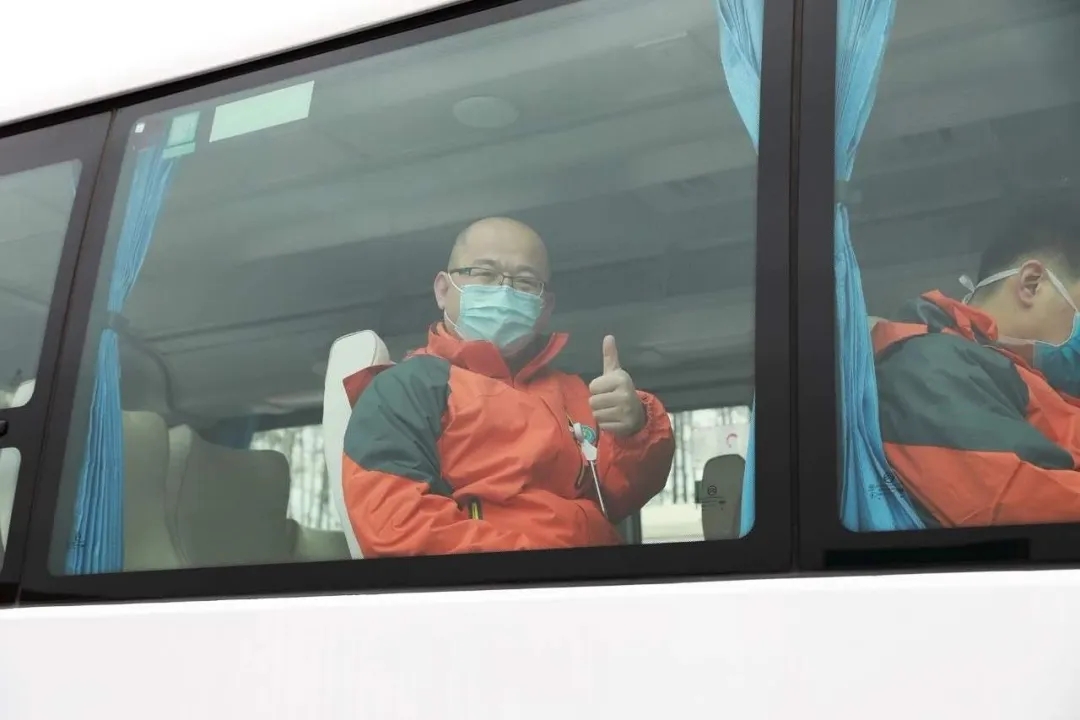 2月12日,醫(yī)生楊旭東、張奎偉和司機(jī)董鵬飛,馳援武漢。