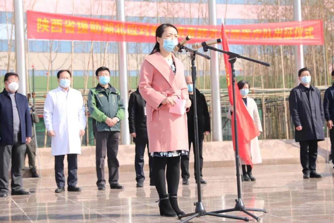 劉勤社同志代表省委省政府為大家壯行,他表示,“武漢疫情依然嚴(yán)峻,每位醫(yī)護(hù)人員勇于擔(dān)當(dāng)?shù)木窳钗腋袆?dòng)。截止目前,陜西已派出近1400名醫(yī)護(hù)人員奔赴‘前線’,省委省政府為陜西醫(yī)療隊(duì)昂揚(yáng)的斗志,負(fù)責(zé)的精神給予高度贊揚(yáng)。希望大家在一線充分展示陜西醫(yī)療隊(duì)和國(guó)際醫(yī)學(xué)應(yīng)有的高質(zhì)量醫(yī)療技術(shù)水平,同時(shí)也做好自我防護(hù),盼大家凱旋回家!”