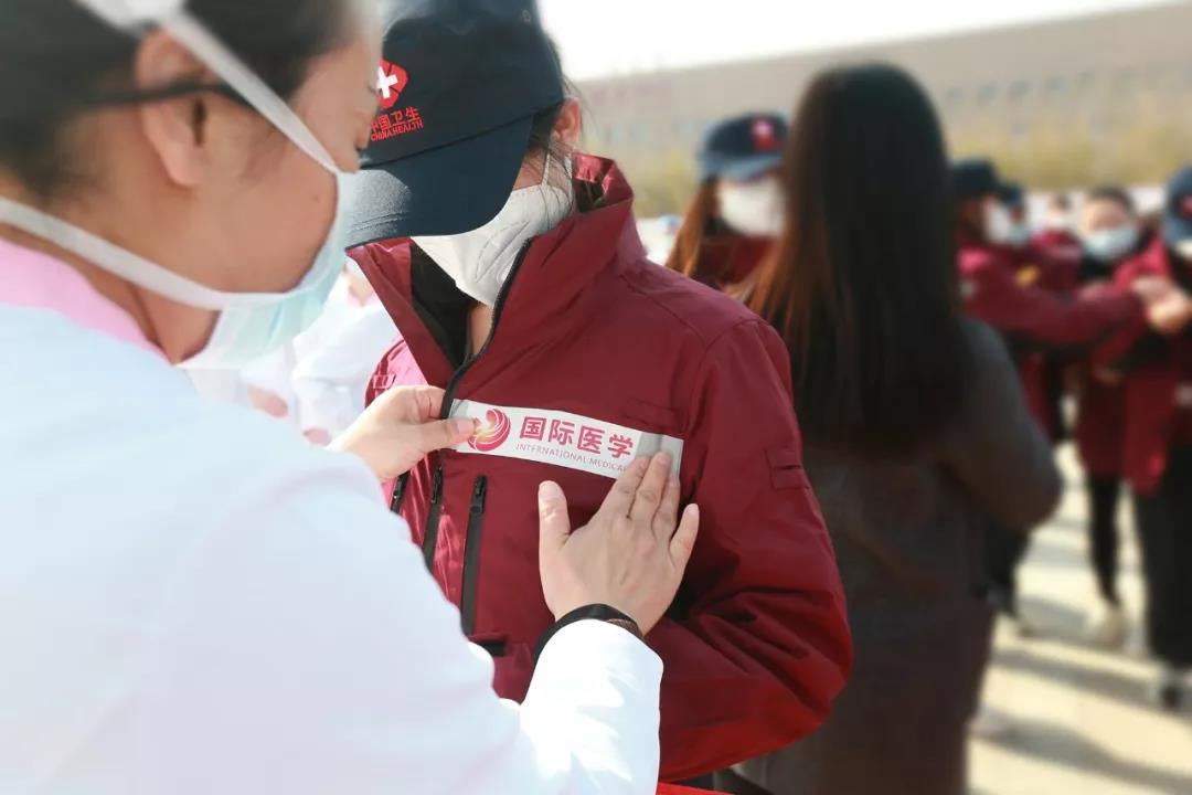 “每一次集結(jié)號(hào)吹響,你們都奮勇向前,在疫情面前無(wú)私奉獻(xiàn)、敢于擔(dān)當(dāng),正是因?yàn)槲覀冇写髳?ài)。國(guó)際醫(yī)學(xué)人時(shí)時(shí)刻刻都不忘初心、牢記使命,用行動(dòng)踐行我們的誓言:施天使之愛(ài),佑百姓健康!”董事長(zhǎng)史今在儀式上向出征隊(duì)員致敬并叮囑隊(duì)員們一定要保護(hù)好自己,“零感染、高質(zhì)量、共克時(shí)艱,出色完成患者的救治任務(wù)。你們帶去的是陜西人民對(duì)武漢人民的深情厚誼,要讓黨旗在一線高高飄揚(yáng)!和武漢人民一起共度難關(guān)!”