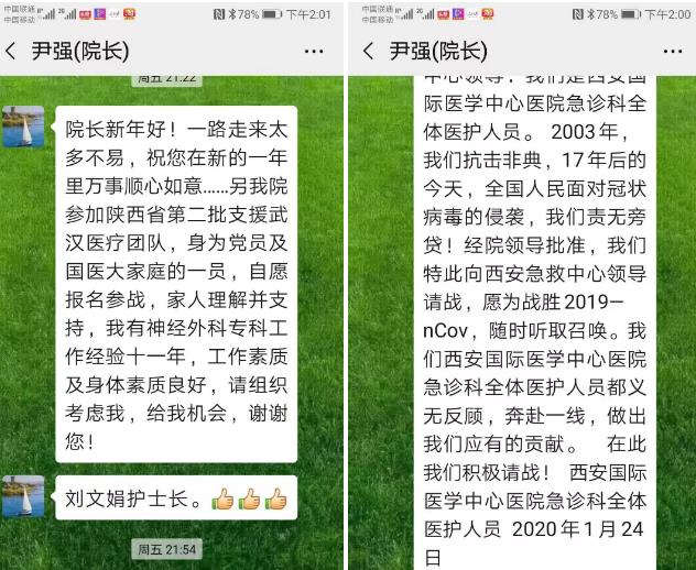 2020年1月24日晚,西安國際醫(yī)學(xué)中心醫(yī)院在工作群中發(fā)布了,西安市衛(wèi)健委《關(guān)于組派醫(yī)療隊援助湖北應(yīng)對新型冠狀病毒感染的肺炎疫情的通知》。