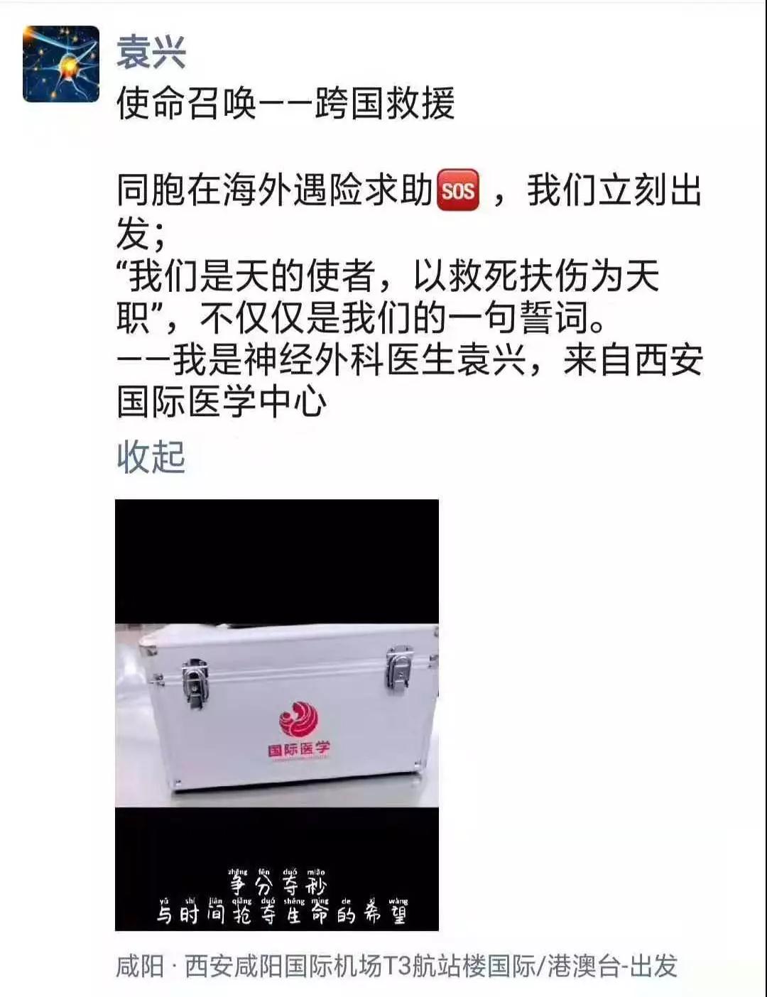 “這是中國醫(yī)生義不容辭的責(zé)任!”西安國際醫(yī)學(xué)中心醫(yī)院腦科醫(yī)院神經(jīng)外科主任賀世明介紹,12月2日,剛下手術(shù)的賀世明主任接到了求助電話,立即匯報(bào)上級(jí)領(lǐng)導(dǎo),尹強(qiáng)院長當(dāng)機(jī)立斷,派出袁興醫(yī)生星夜兼程,帶著急救藥品設(shè)備奔赴泰國。