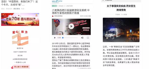 12月4日,西安國際醫(yī)學(xué)中心醫(yī)院醫(yī)護(hù)人員在西安咸陽國際機(jī)場的特殊通道嚴(yán)陣以待,中國駐泰國大使館多方協(xié)調(diào),春秋航空總部提供幫助,西安市人民政府外事辦公室啟動(dòng)安全領(lǐng)事保護(hù)機(jī)制,西安咸陽機(jī)場海關(guān)通力協(xié)調(diào)、盡可能壓縮通關(guān)時(shí)長,西安咸陽國際機(jī)場運(yùn)行控制協(xié)調(diào)中心鼎力支持,從泰國到西安,直到西安國際醫(yī)學(xué)中心醫(yī)院的救護(hù)車停在停機(jī)坪上……陜西省多家媒體多方報(bào)道、中央電視臺(tái)二套播報(bào)點(diǎn)贊,跨國救援的故事溫暖了西安城。