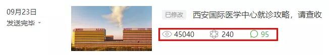 西安國際醫(yī)學中心開業(yè)以來,得到社會各界的廣泛支持與認可,新華網(wǎng)、人民網(wǎng)、央廣網(wǎng)、中國新聞社、健康時報、人民日報海外網(wǎng)、陜西日報、陜西人民廣播電臺、西安日報、西安晚報、華商報、西部網(wǎng)、新浪、搜狐、今日頭條、榮耀西安等各大主流媒體、融媒體走進西安國際醫(yī)學中心,進行了一輪又一輪的的報道,獲得數(shù)萬網(wǎng)友點贊、熱評。同時,西安國際醫(yī)學中心微信公眾號屢次榮獲陜西醫(yī)療自媒體聯(lián)盟醫(yī)療機構類榜單第2名,“狀元文”《西安國際醫(yī)學中心就診攻略,請查收》獲得了45040的閱讀量,榮登榜首。位列第二的《西安國際醫(yī)學中心最美全家福溫暖來襲!》更獲得52821的閱讀量。僅“十一”假期7天,西安國際醫(yī)學中心微信公眾號粉絲數(shù)新增10261人!