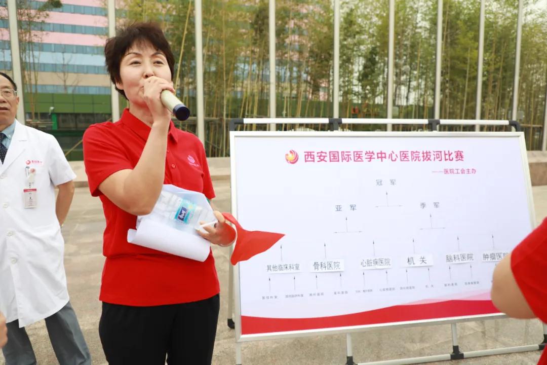 在院慶一周年之際,西安國(guó)際醫(yī)學(xué)中心醫(yī)院舉行“凝心聚力展風(fēng)采”拔河比賽,來(lái)自各機(jī)關(guān)部門(mén)、??漆t(yī)院、科室共有11支隊(duì)伍275名隊(duì)員參加。王志峰總經(jīng)理親臨現(xiàn)場(chǎng)觀摩活動(dòng)并為參賽隊(duì)員加油助威。