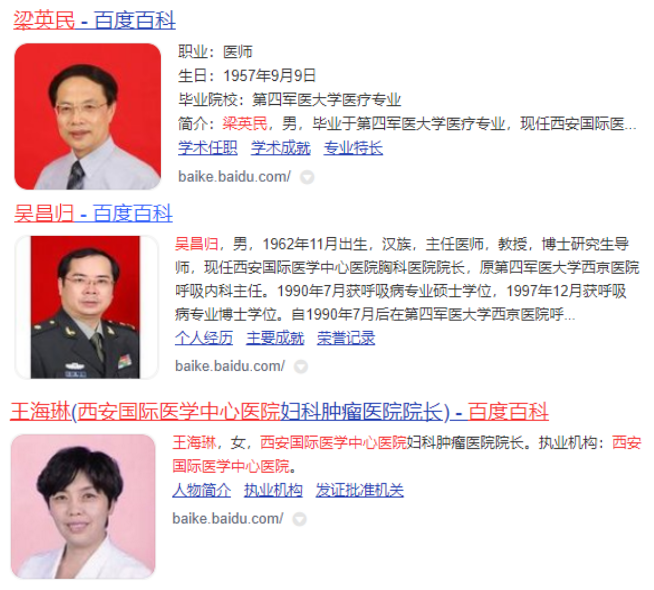 為方便于受眾了解西安國際醫(yī)學中心醫(yī)院,查詢有關專家資料,咨詢有關健康問題以及預約掛號,經(jīng)過嚴格的醫(yī)生資質(zhì)和執(zhí)業(yè)資格審核,我院將50位專家資料登陸在百度百科、好大夫在線官網(wǎng)上。用戶可以通過百度APP、百度瀏覽器、好大夫在線APP、PC版網(wǎng)站、手機版網(wǎng)站、微信公眾號、微信小程序等多個平臺,方便地搜索到想要了解的專家,一站式解決線上服務、線下就診等各種醫(yī)療問題。