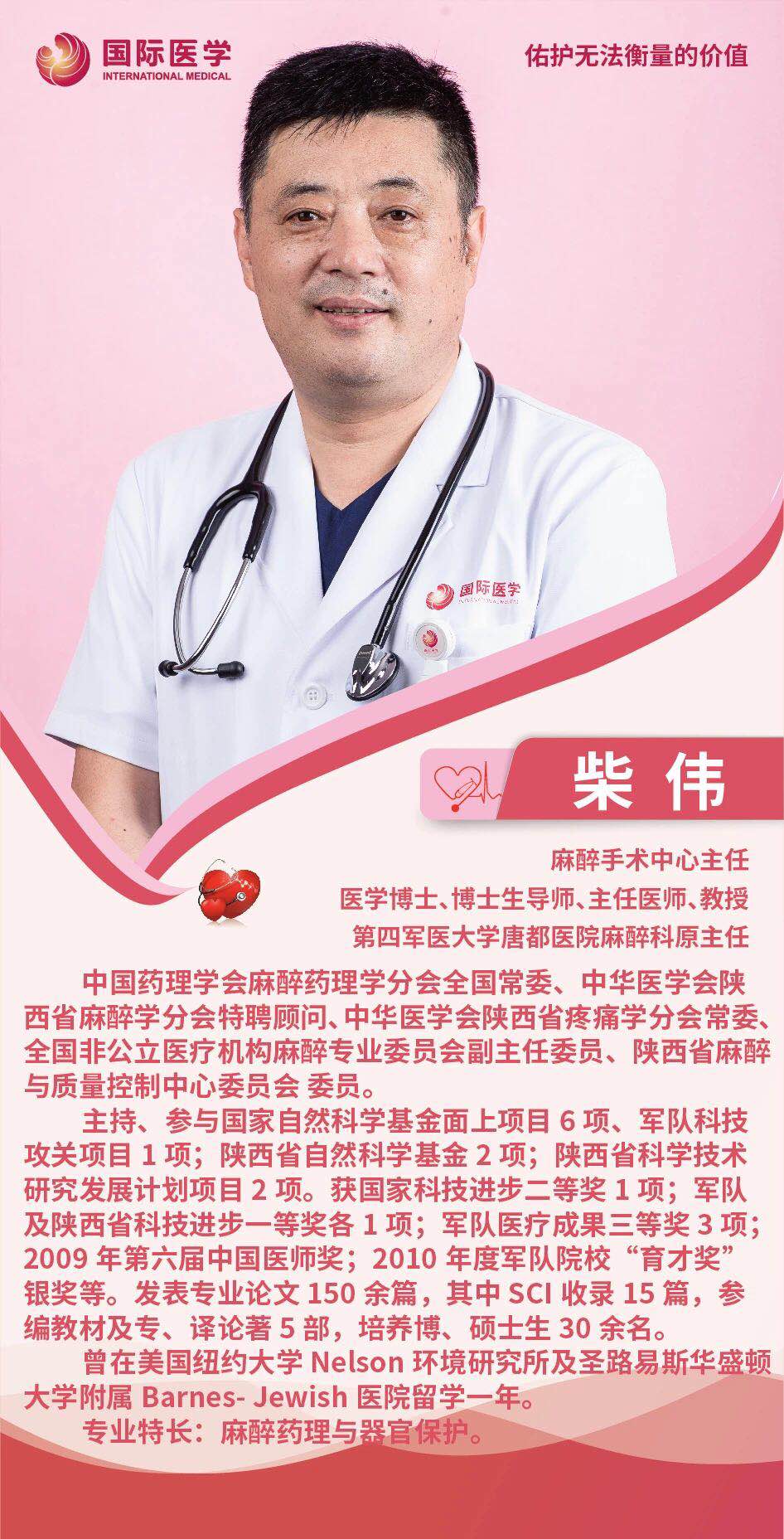 “那時(shí),麻醉風(fēng)險(xiǎn)比現(xiàn)在大得多!”柴偉說,才工作時(shí),手術(shù)室里常遇到心跳驟停的患者,好在后來都搶救過來了。因此,搶救對(duì)麻醉醫(yī)生來說是得心應(yīng)手的。柴偉自信地說,在唐都醫(yī)院搶救能力最強(qiáng)的應(yīng)該是麻醉科醫(yī)生。在唐都醫(yī)院,柴偉一路晉升為副主任醫(yī)師、主任醫(yī)師,副教授、教授,并且負(fù)責(zé)麻醉科全面工作20年。越來越多的橄欖枝拋向他——1986年在北京協(xié)和醫(yī)院麻醉科進(jìn)修心臟外科麻醉一年,先后赴日本、加拿大等多國進(jìn)修交流。2006年,由國家基金委委派,他做訪問學(xué)者在美國紐約大學(xué)和華盛頓大學(xué)訪問一年。他主持和參與國家自然科學(xué)基金面上項(xiàng)目6項(xiàng),軍隊(duì)及省部級(jí)課題5項(xiàng)。獲國家科技進(jìn)步二等獎(jiǎng)1項(xiàng)、軍隊(duì)及陜西省科技進(jìn)步一等獎(jiǎng)各1項(xiàng),獲軍隊(duì)醫(yī)療成果三等獎(jiǎng)3項(xiàng)。獲得中國醫(yī)師獎(jiǎng)及軍隊(duì)院?!坝弄?jiǎng)”銀獎(jiǎng)。發(fā)表論文150余篇,其中SCI收錄15篇;參編著作5部。此外,柴偉還擔(dān)任《臨床麻醉雜志》和《中華麻醉學(xué)雜志》通訊編委,國家衛(wèi)生部主管的醫(yī)學(xué)參考報(bào)麻醉學(xué)頻道編委。