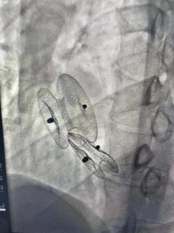 在詳細(xì)了解患者病情,仔細(xì)閱讀患者影像資料后,曾廣偉主任已經(jīng)有了清晰的手術(shù)策略。在精心的準(zhǔn)備和團(tuán)隊(duì)的配合下,曾主任順利的利用兩個(gè)封堵器對房缺進(jìn)行了封堵。