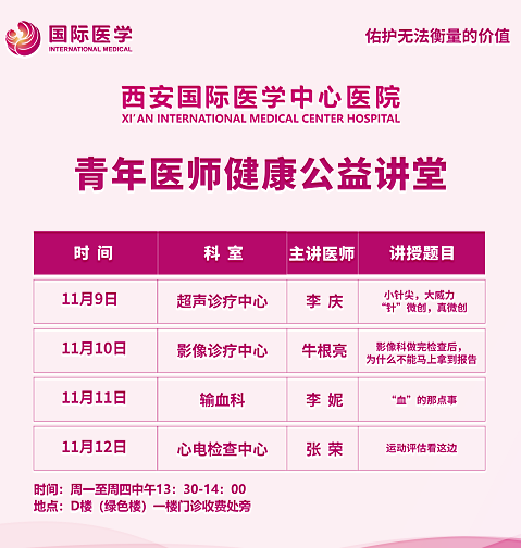 西安國際醫(yī)學(xué)中心醫(yī)院—青年醫(yī)師健康公益講堂預(yù)告