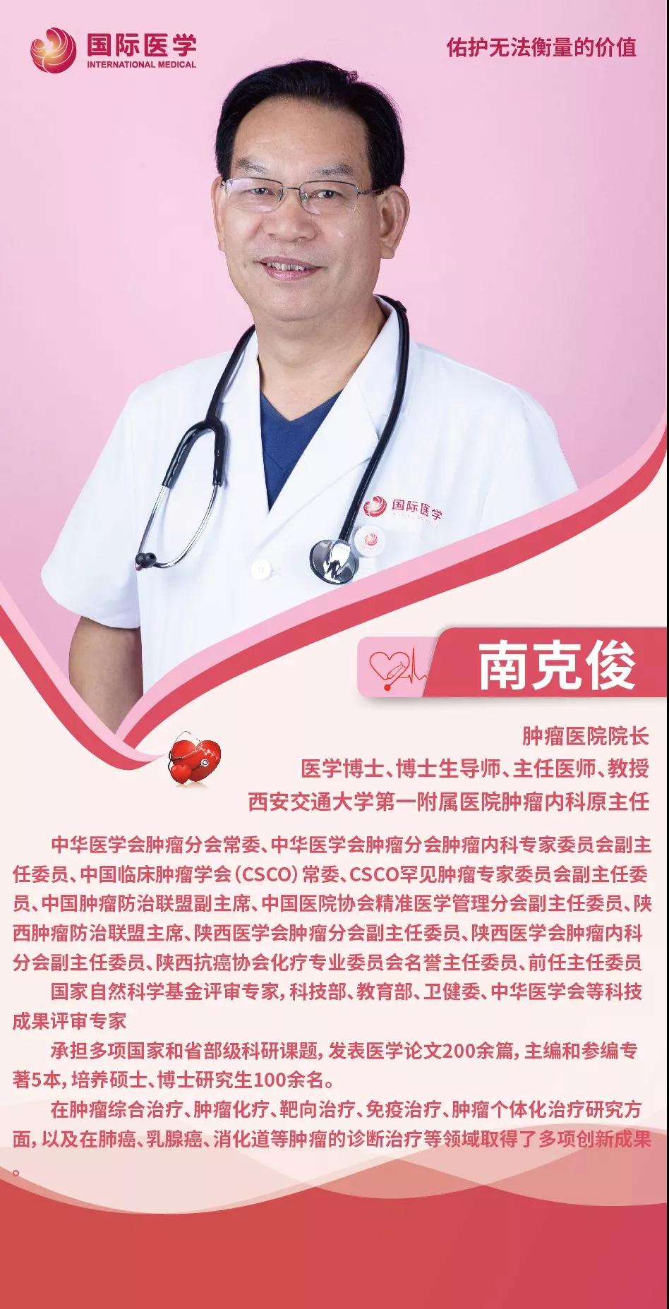 南克俊,腫瘤醫(yī)院院長,醫(yī)學(xué)博士、博士生導(dǎo)師、主任醫(yī)師、二級教授,西安交通大學(xué)第一附屬醫(yī)院腫瘤內(nèi)科原主任,中華醫(yī)學(xué)會腫瘤分會常委,中華醫(yī)學(xué)會腫瘤分會腫瘤內(nèi)科專家委員會副主任委員,中國臨床腫瘤學(xué)會(CSCO)常委,CSCO罕見腫瘤專家委員會副主任委員,中國腫瘤防治聯(lián)盟副主席,中國醫(yī)院協(xié)會精準(zhǔn)醫(yī)學(xué)管理分會副主任委員,陜西腫瘤防治聯(lián)盟主席,陜西醫(yī)學(xué)會腫瘤分會副主任委員;承擔(dān)多項國家和省部級科研課題,發(fā)表醫(yī)學(xué)論文200余篇,主編和參編專著5本,培養(yǎng)碩士、博士研究生100余名;在腫瘤綜合治療、腫瘤化療、靶向治療、免疫治療、腫瘤個體化治療研究方面,以及在肺癌、乳腺癌、消化道等腫瘤的診斷治療等領(lǐng)域取得了多項創(chuàng)新成果。
