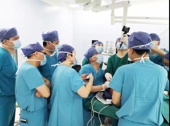 2020年12月10日,一支由小兒外科、耳鼻咽喉外科、麻醉手術中心組成的專家團隊,在麻醉下對患兒實施了精準治療。小兒外科郭正團主任、麻醉手術中心柴偉主任、王彬榮副主任插管麻醉,耳鼻咽喉外科王健教授主刀激光切除喉部及聲門處病變,王懷杰醫(yī)生對咽部淋巴管瘤及頜面部實施了介入治療。