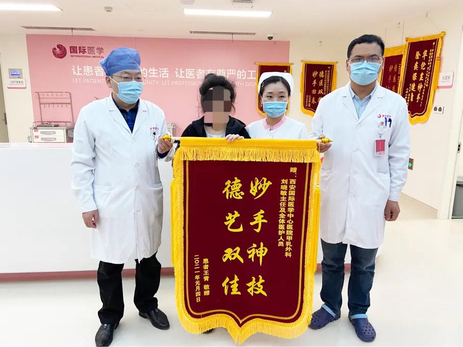 王女士終于可以暢快呼吸、正常走路了,不用再擔(dān)心壓在胸前令人窒息的腫瘤和別人異樣的眼光。近日,王女士在西安國(guó)際醫(yī)學(xué)中心醫(yī)院甲乳外科接受了右乳全乳切除術(shù) 胸壁皮瓣成形術(shù)或植皮術(shù),切除了胸口重達(dá)5斤的腫瘤。
