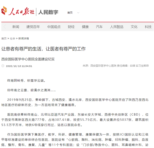 2020年央媒上的西安國際醫(yī)學(xué)中心醫(yī)院好故事。
