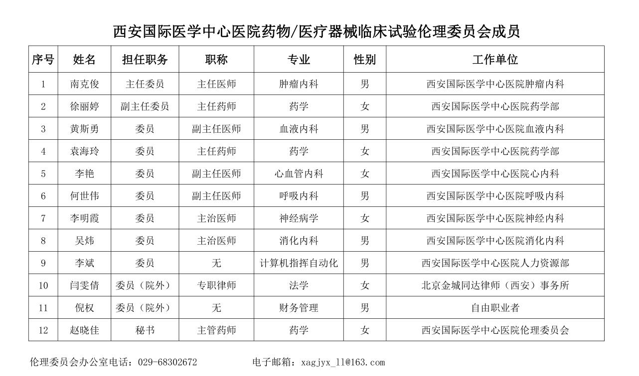 西安國(guó)際醫(yī)學(xué)中心醫(yī)院藥物/醫(yī)療器械|臨床試驗(yàn)倫理委員會(huì)成員