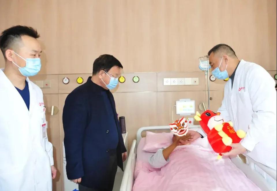 2月12日農(nóng)歷大年初一,國際醫(yī)學(xué)董事長史今、總裁劉瑞軒等領(lǐng)導(dǎo)一行來到西安國際醫(yī)學(xué)中心醫(yī)院,看望堅守在一線崗位的醫(yī)護(hù)人員及住院患者,給大家拜年并送上新春祝福。院長尹強(qiáng)、總經(jīng)理王志峰等陪同慰問。