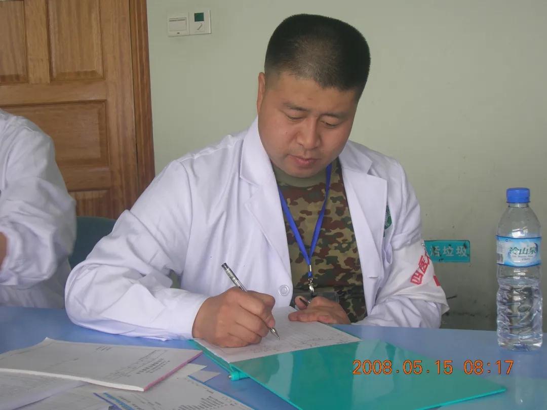 14時(shí)28分,山河破碎,天崩地裂,西安有強(qiáng)烈震感。李占亭撥開(kāi)向室外沖的人潮,逆行進(jìn)入透析室,在天旋地轉(zhuǎn)中幫助尚在透析的患者下機(jī)。安置好患者,他才想起在唐都醫(yī)院家屬院的妻子和不滿2歲的幼女?!叭粲袘?zhàn),召必至”,當(dāng)天晚上,李占亭響應(yīng)號(hào)召,收拾行囊準(zhǔn)備出發(fā)。急救包、迷彩服、膠鞋、手電筒、巧克力、壓縮餅干、礦泉水、紙巾是他的裝備。沒(méi)有人知道他將面臨怎樣的危險(xiǎn)與挑戰(zhàn)。