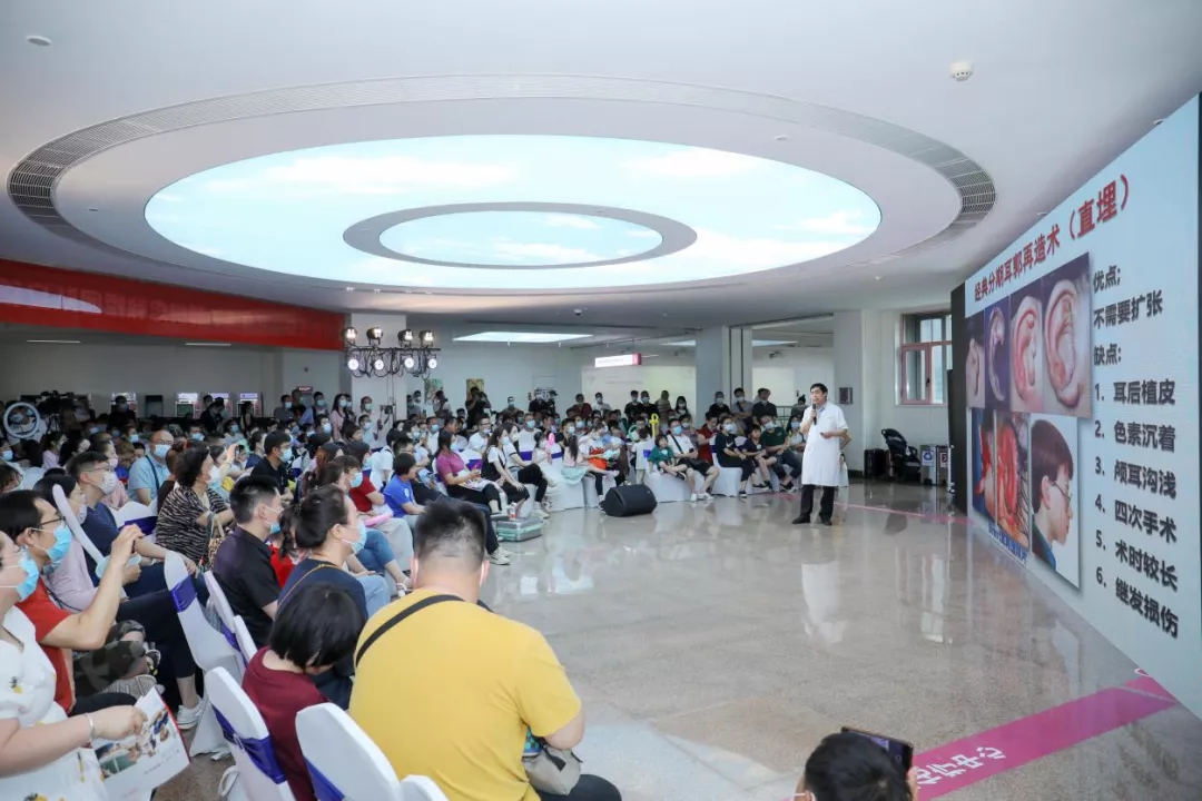 活動開始,大屏幕首先呈現(xiàn)出來自全國各地“小耳寶寶”的端午祝福,孩子們的天真笑臉,美好愿望令人動容。隨后西安國際醫(yī)學中心醫(yī)院整形醫(yī)院院長——郭樹忠教授,為數(shù)百個“小耳”家庭,詳細講解了“小耳畸形”疾病的相關知識,客觀列舉了各種“耳再造”手術方法優(yōu)缺點,力求讓患有“小耳”疾病的孩子及其家庭,對“疾病”及治療方式有更加全面系統(tǒng)的了解,也為到達最佳手術年齡,即將手術的“小耳”孩子們,在家庭護理環(huán)節(jié)、治療選擇環(huán)節(jié)等,提供清晰準確的預判建議。