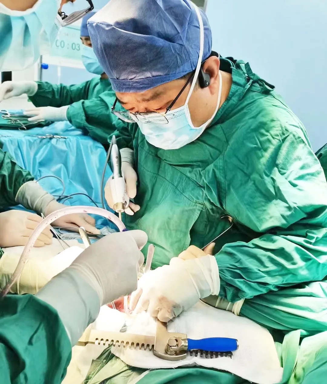 麻醉手術(shù)中心副主任丁倩為減輕患者術(shù)后不適,實(shí)施單腔聯(lián)合支氣管封堵插管,同時進(jìn)行了肋間神經(jīng)阻滯麻醉。術(shù)中發(fā)現(xiàn)患者膈疝巨大,食管和疝囊分界不清,部分胃組織和結(jié)腸疝已進(jìn)入胸腔。李文海憑借豐富的臨床經(jīng)驗(yàn),仔細(xì)辨別解剖變異,有序完成分離、縫合、修補(bǔ)等一系列操作,胸外科穆強(qiáng)副主任醫(yī)師、劉歡住院醫(yī)師、麻醉手術(shù)中心團(tuán)隊(duì)通力配合,手術(shù)最終順利完成,患者安全返回胸外科監(jiān)護(hù)室病房。目前患者術(shù)后恢復(fù)良好,于近日準(zhǔn)備出院。