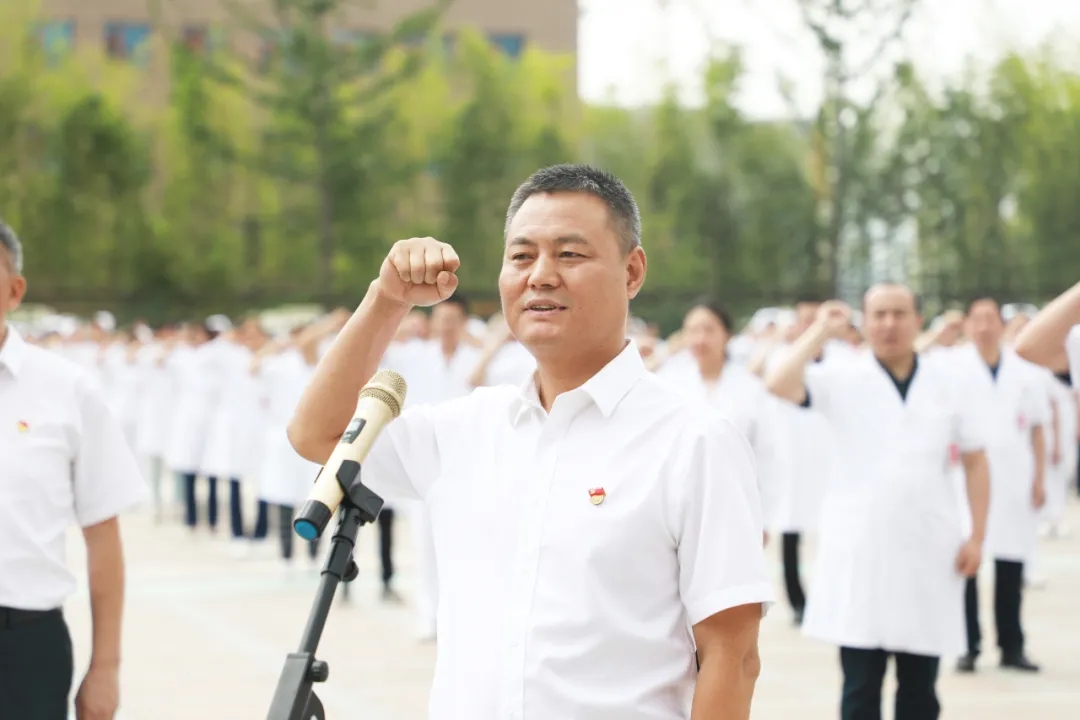 尹強(qiáng)院長在講話中指出,醫(yī)院黨委在高新區(qū)黨工委和集團(tuán)黨委的正確領(lǐng)導(dǎo)下,堅(jiān)持以習(xí)近平新時(shí)代中國特色社會(huì)主義思想為指導(dǎo),實(shí)現(xiàn)了高質(zhì)量發(fā)展。一路走來,醫(yī)院順利通過執(zhí)業(yè)許可驗(yàn)收,圓滿完成援鄂抗疫任務(wù),相繼成為西北大學(xué)、陜西中醫(yī)藥大學(xué)附屬醫(yī)院,一次性高分通過JCI認(rèn)證,醫(yī)療數(shù)據(jù)穩(wěn)步增長、人才隊(duì)伍持續(xù)建強(qiáng)、診療水平不斷提升……每一個(gè)進(jìn)步、每一項(xiàng)成就、每一次突破,無不閃耀著中國共產(chǎn)黨正確領(lǐng)導(dǎo)的光輝,無不承載著滴水穿石、久久為功的創(chuàng)業(yè)執(zhí)著,無不凝聚著醫(yī)院各級(jí)黨組織、廣大黨員和全體員工的心血和汗水。醫(yī)院各級(jí)黨的基層組織和全體黨員,以習(xí)主席“七?一”講話為統(tǒng)攬,以建設(shè)“健康中國”為核心,以全面實(shí)現(xiàn)年度工作目標(biāo)為抓手,用激情和汗水譜寫醫(yī)院高質(zhì)量發(fā)展新篇章,以優(yōu)異成績?yōu)辄h的百年華誕獻(xiàn)禮。