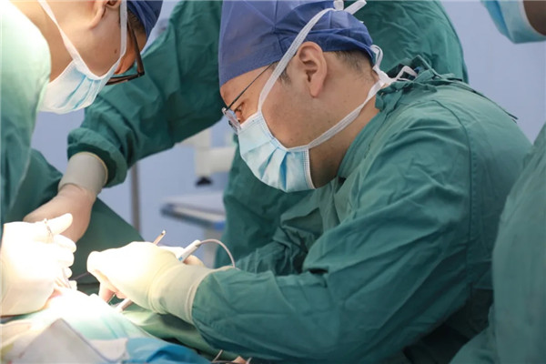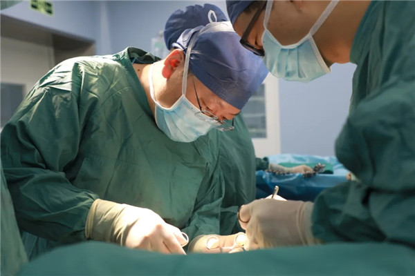 做好了充分準(zhǔn)備與預(yù)案,手術(shù)臺(tái)前的劉曉敏鎮(zhèn)定專注,在分離切斷王金花的甲狀腺懸韌帶后,他抽絲剝繭,一根根處理甲狀腺上極血管,繼而結(jié)扎切斷甲狀腺中、下的靜脈、動(dòng)脈,在由峽部切斷處起始分離甲狀腺背面時(shí),劉曉敏仔細(xì)辨認(rèn)喉返神經(jīng)和甲狀旁腺,確保不傷分毫。一般情況下,手術(shù)至此可以順利結(jié)束。可王金花是位老齡患者,由于氣管軟化,加上腫塊長(zhǎng)久壓迫,氣管就像失去回彈力的彈簧,從醫(yī)學(xué)角度看,患者已可以治愈,短期也無(wú)生命大礙,可彈不起來(lái)的“彈簧”還會(huì)重新聚攏在一起,讓老太太喘不上氣。一次手術(shù)能解決的問(wèn)題,絕不讓患者再受二茬罪,劉曉敏又對(duì)王金花實(shí)施氣管懸吊術(shù),把“癱瘓”了的氣管朝兩邊拉起,給氣管留出足夠的空間出氣。