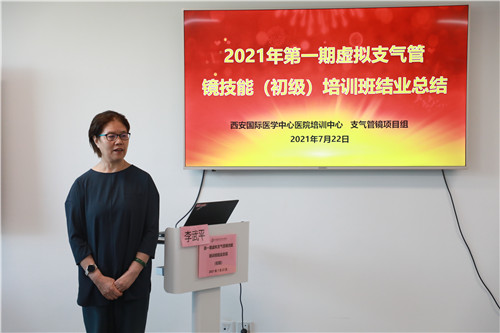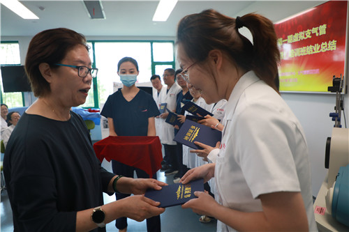 在結(jié)業(yè)典禮上,李武平院長(zhǎng)頒發(fā)培訓(xùn)證書,對(duì)結(jié)業(yè)學(xué)員表示祝賀;對(duì)來自支氣管鏡檢查室、培訓(xùn)中心兼職教師谷志彬教授的專業(yè)素養(yǎng)與辛苦付出表示贊揚(yáng);對(duì)康福霞主任帶領(lǐng)下的培訓(xùn)中心工作團(tuán)隊(duì)給予高度肯定。同時(shí)李院長(zhǎng)指出:“每一段看似結(jié)束的培訓(xùn)旅程、都應(yīng)是每位學(xué)員職業(yè)生涯新的開始。國(guó)際醫(yī)學(xué)培訓(xùn)中心作為醫(yī)生的“圖書館”,應(yīng)當(dāng)時(shí)刻了解臨床所需,充分利用各種高端模擬設(shè)備,建立完善的課程體系,助力更多臨床醫(yī)生時(shí)刻充電;學(xué)員應(yīng)當(dāng)積極參加并珍惜每一次培訓(xùn)機(jī)會(huì),豐滿自己羽翼?!?