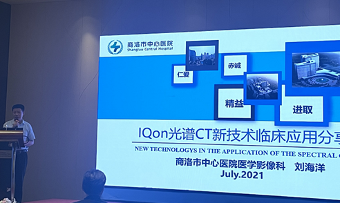 商洛市中心醫(yī)院CT室主任劉海洋教授分享“IQon光譜CT 新技術(shù)臨床應(yīng)用分享,闡述了多參數(shù)平臺(tái)以及光譜臨床化的應(yīng)用,即提升隱匿性病灶檢出、腫瘤分期、血管支架再狹窄評(píng)估、腦卒中的早期診斷、降低圖像偽影等方面。