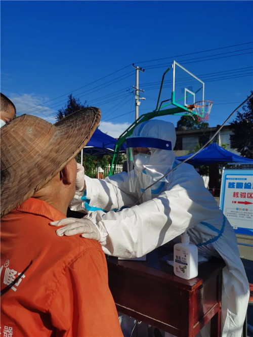 8月7日立秋,氣溫居高不下,連體防護服下,護士崔佳惠的汗水浸濕了衣衫,室外是36度的高溫炙烤,隔著水霧模糊的隔離防護面罩,她已經找到了迅速準確進行核酸檢測的方法,與她并肩作戰(zhàn)的是來自西安國際醫(yī)學中心醫(yī)院的140余名醫(yī)護人員。