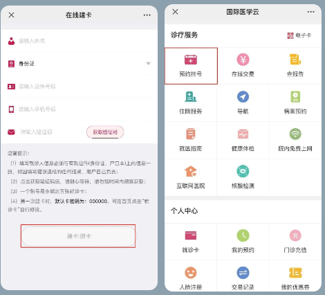 3、輸入個人信息完成就診卡綁定。綁卡后,點擊【預約掛號】
