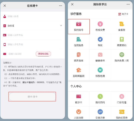 3、輸入個人信息完成就診卡綁定。綁卡后,點擊【預(yù)約掛號】