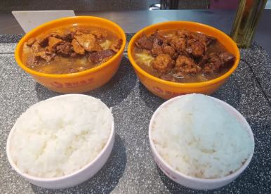 “米飯?zhí)撞屠锩婕t燒排骨、西紅柿炒蛋、白灼青菜都有,還可以選炸醬面、小菜、湯,營(yíng)養(yǎng)均衡又健康?!彼Q起了大拇指。