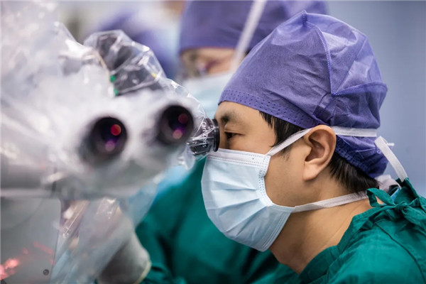 鼻蝶神經(jīng)內(nèi)鏡三腦室底造瘺治療腦積水,對于術(shù)者的要求極高,不僅要求具有扎實的顱底解剖基礎(chǔ),還要求有豐富的內(nèi)鏡和顯微手術(shù)經(jīng)驗。腦科醫(yī)院賀世明副院長及團隊選取了距離病灶部位最近且對大腦創(chuàng)傷最小的部位,將幾個手術(shù)器械從鼻腔送進病變區(qū),并在如蜘蛛網(wǎng)般的顱底神經(jīng)血管通道中穿梭,將病灶從鼻腔螞蟻搬家般瓦解運出。這一手術(shù),為世界首例。