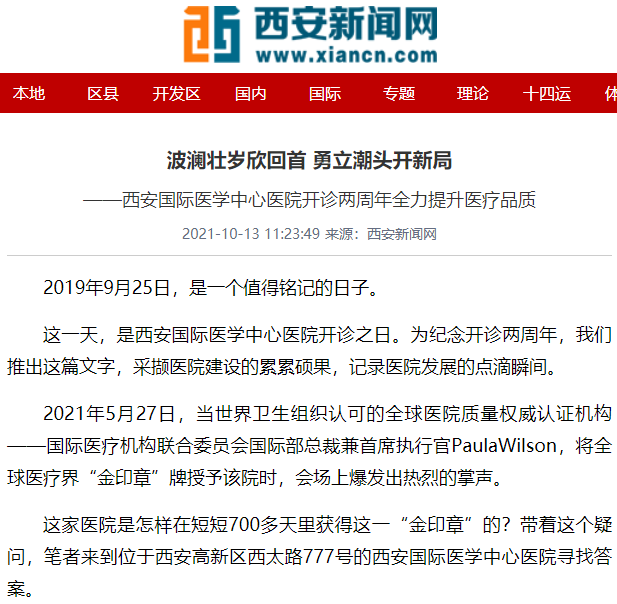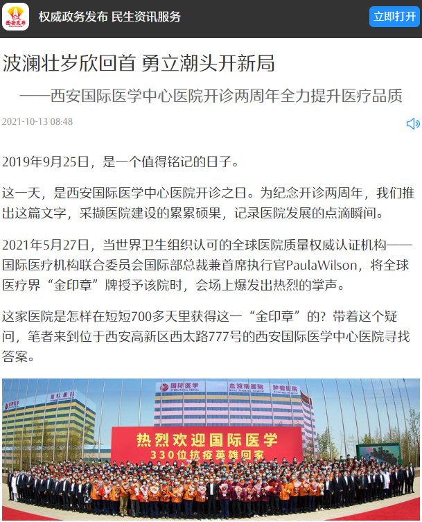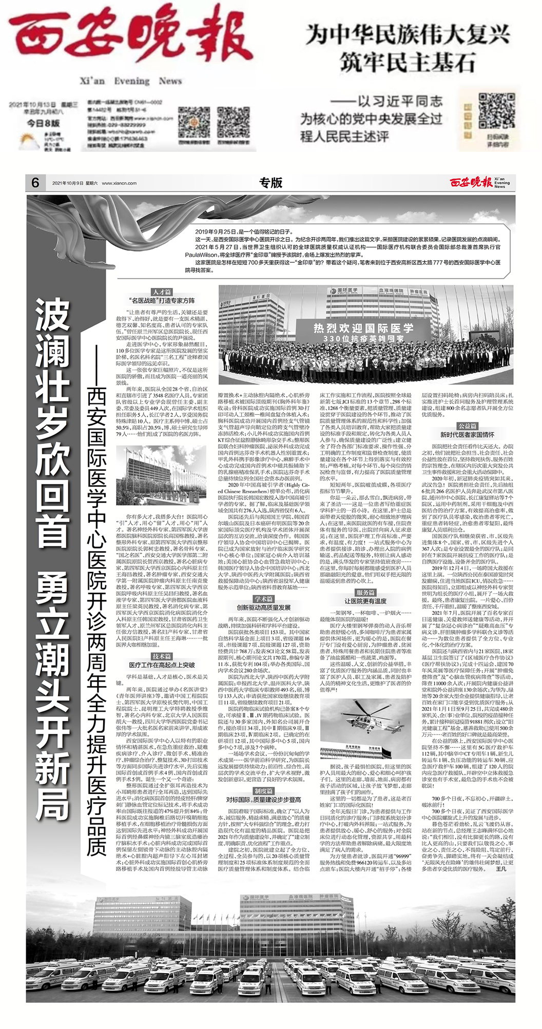 編者按:今日,《西安晚報》A8版用整版刊登了《波瀾壯歲欣回首 勇立潮頭開新局——西安國際醫(yī)學中心醫(yī)院提升醫(yī)療品質(zhì)紀實》,以圖文并茂的形式記錄了醫(yī)院發(fā)展的點滴瞬間,展現(xiàn)了西安國際醫(yī)學中心人一路向前的奮斗豪情。