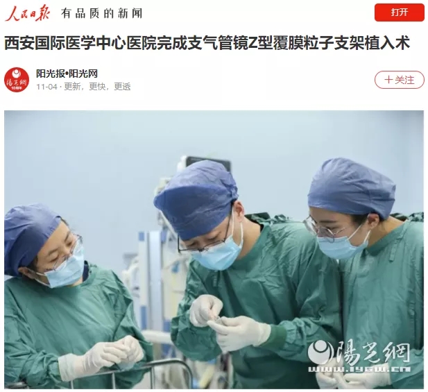 [老年健康?醫(yī)視界]西安國際醫(yī)學(xué)中心醫(yī)院完成經(jīng)支氣管鏡Z型覆膜粒子支架植入術(shù)
