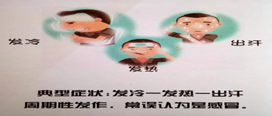 發(fā)作前幾天,每天或隔天可有程度不同發(fā)燒,同時伴疲勞、頭痛、腰背痛、肌肉酸痛、厭食、全身或腹部不適、輕度腹瀉和怕冷等前驅(qū)癥狀;多次發(fā)作后,可引起貧血和脾腫大。